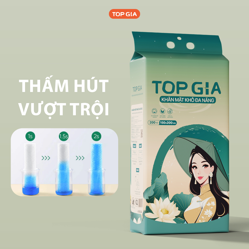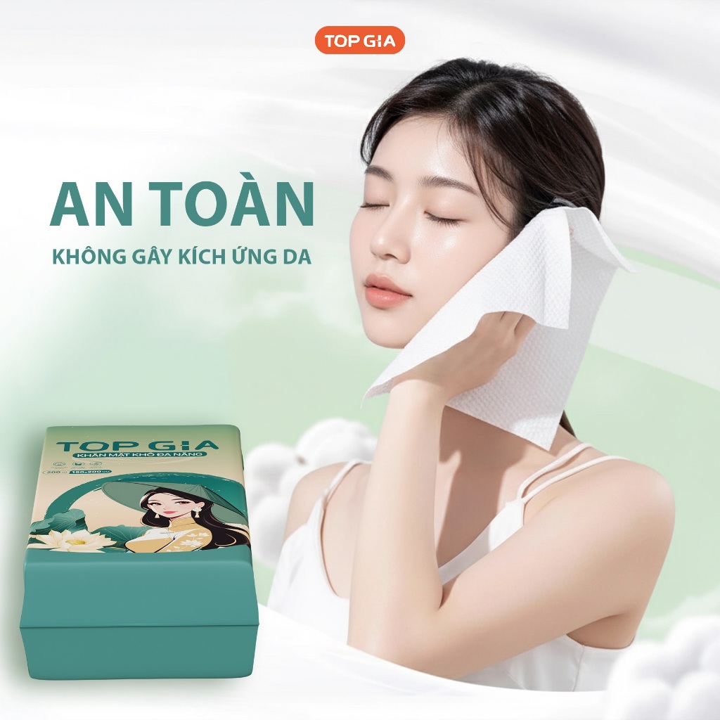 Khăn vải khô đa năng Top Gia treo tường Sắc Việt, dùng 1 lần siêu mềm mịn, an toàn cho da, bịch 200 tờ